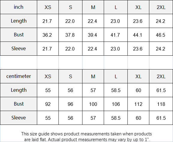 This size guide shows product measurements taken when products are laid flat. Actual product measurements may vary by up to 1".